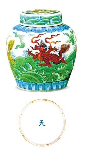 r r成化斗彩海水异兽图“天”字罐 (原定名 后经耿宝昌先生正确断代)r r